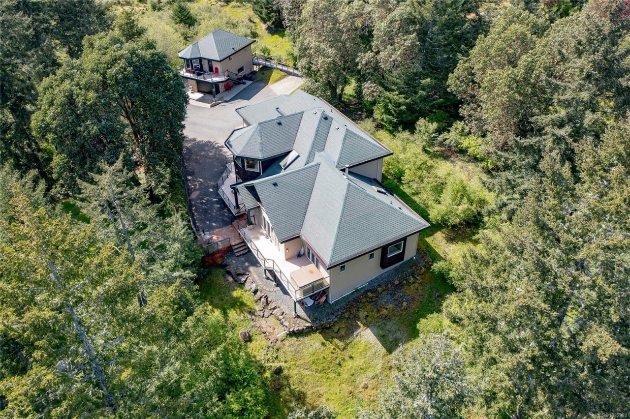 Set on 5.39 acres of peaceful, private land, this custom-built home blends natural beauty, comfort & craftsmanship. Surrounded by mature trees and a picturesque pond, the property offers private access to Gowlland Todd Park's extensive trail system with miles of scenic hiking and biking right from your doorstep. Privately positioned at the end of a fully paved driveway, it provides ample parking for vehicles/boat/RV. Inside, a warm, cohesive colour palette complements the thoughtful layout and quality finishes throughout. The main-floor primary suite features a private hot tub, while the open-concept Fir kitchen, dining room & spacious living...read more
