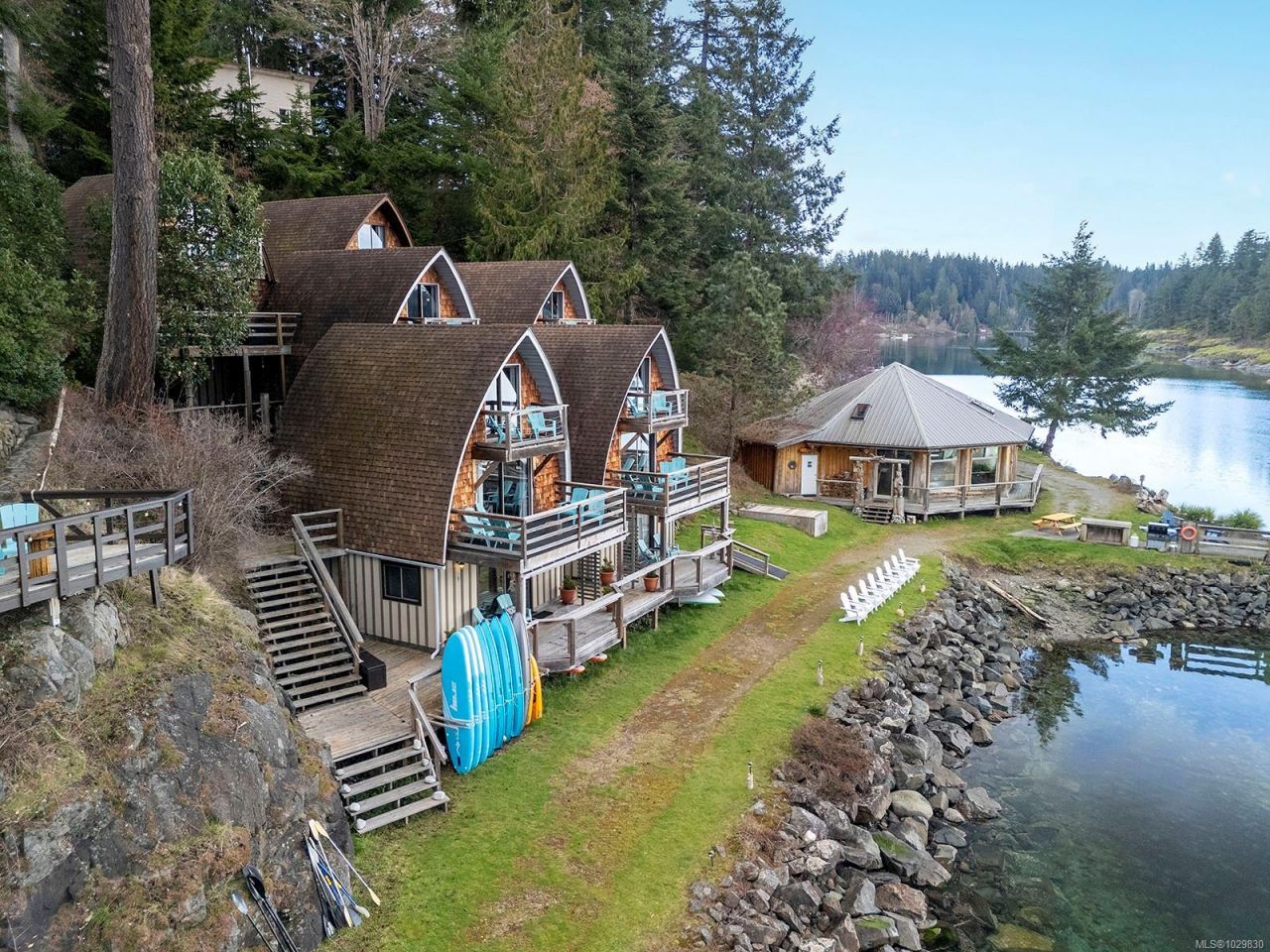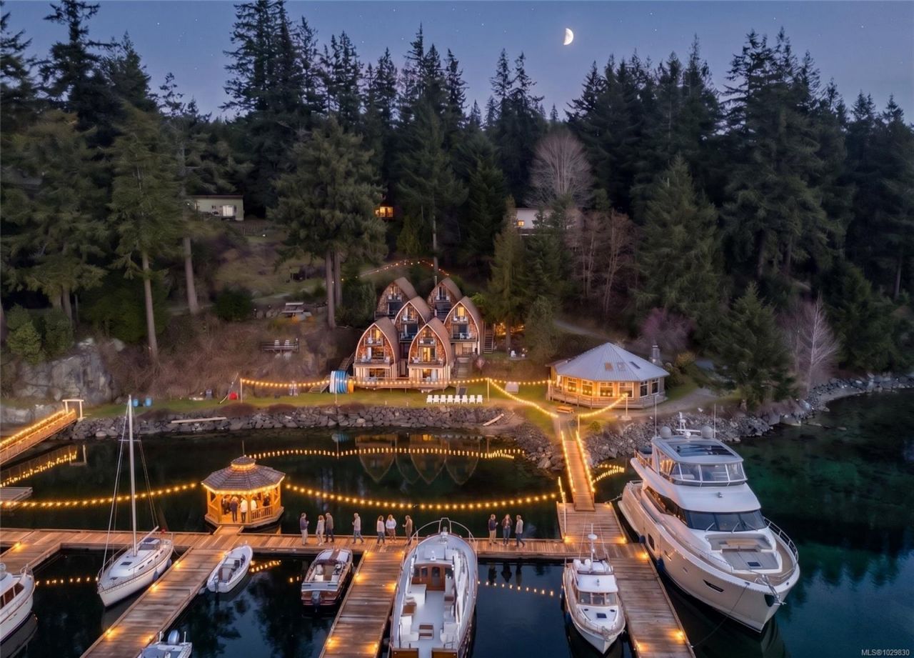 Motivated seller; vendor take back available at very reasonable rates. Rare opportunity to acquire an oceanfront hospitality property in Gowlland Harbour on the protected west side of Quadra Island, just a 10 minute ferry ride from Campbell River. Set on just over 2 acres with more than 490 feet of ocean frontage, the property features 6 distinctive cathedral arch chalets containing 11 accommodation suites, each positioned to capture stunning harbour views. Improvements include a 1,800 sq ft log pavilion; 1,220 sq ft workshop with loft studio; a 2,000 sq ft main residence with 4 bedrooms plus an office; and a separate 2 bedroom guest cabin....read more